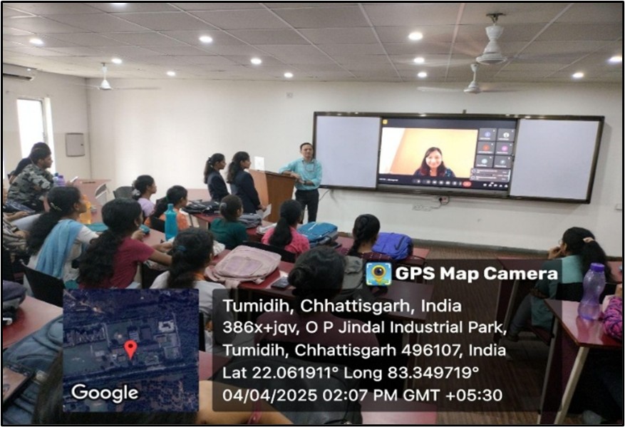 On 4th April, 2025, the Department of Chemistry, School of Science at OP Jindal University, in collaboration with the OP Jindal University Raigarh Alumni Association (OPJURAA), hosted an inspiring Alumni Talk entitled “From Graduate to Ground breaker: A Story of Transformation” featuring esteemed alumna Ms. Kalyani Singh, Lead Pot Controller, Vedanta Limited, Odisha.